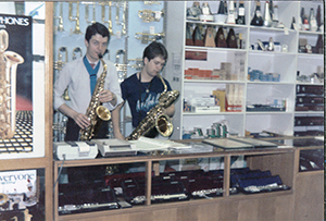 Bill Lewington Shop in Shaftesbury AvenueBill started his musical life as a drummer and moved onto the Clarinet because he got fed up of transporting his drums on the bus. From Clarinet he moved onto Saxophone and within a short time had made a very good name for himself playing with the top artists and bands of the decade, including Ambrose And His Orchestra, Oscar Rabin and his band along with many West End Theatres.