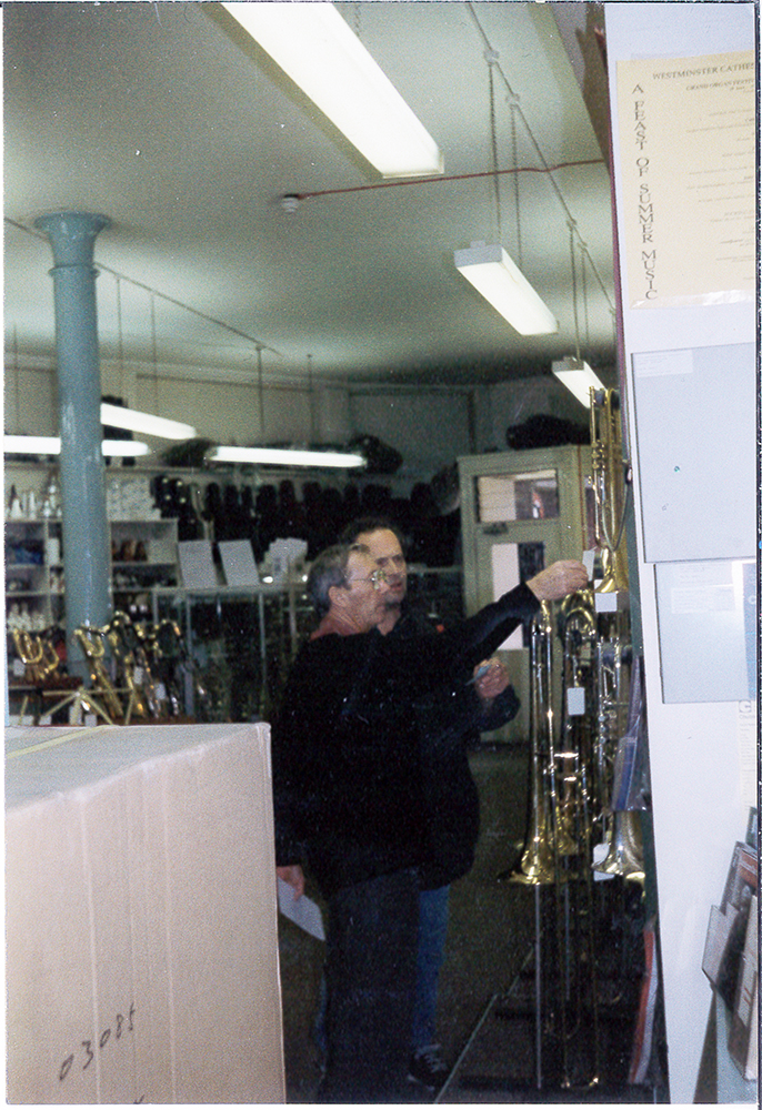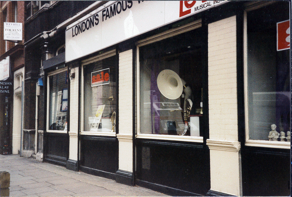 Bill Lewington It was as a result of injury to his thumb, not being able to play for a period of time, Bill moved into musical instrument retailing specialising in Brass and Woodwind, securing premises in Macclesfield Street on the 1st floor, still remembered by many to this day, with a barber downstairs and massage parlour upstairs. Joined by his brother Denis, this soon extended to include a repair workshop. Instruments in the early days were hard to come by and Bill would visit Fleet Street to get copies of the Music Exchange and Mart the night before they hit the street to hunt out instruments he could purchase. It was also not unusual for Bill to ask musicians working the cruise ships to bring back instruments they had purchased in New York for him. The shop later moved to 164 Shaftesbury Avenue, with the office of writer and composer Lionel Bart upstairs and then along to 144 Shaftesbury Avenue, overlooking the Palace Theatre at Cambridge Circus, but this time with a warehouse in Covent Garden. Being in the heart of Theatreland and so close to the famous Ronnie Scott club, the shop would have the cream of international musicians coming through its doors. Ronnie would have his repairs done here and such legends as Roland Kirk, Sonny Rollins, Michael Brecker, Sal Nistico would all have various adjustments and repairs done whilst playing at the club and of course top London players, Ronnie Ross, Tony Coe, Pete King, Alan Skidmore etc, were regular customers. As the business expanded Bill moved into Distribution for Noblet and Leblanc Clarinets, building up a very close friendship with Leon Leblanc. Then Yamaha Japan came knocking and Bill became the distributor for Yamaha Brass and Woodwind Instruments. Bill loved music and supported many musicians over the years from Music for Youth to sponsorship of a Brass Band.