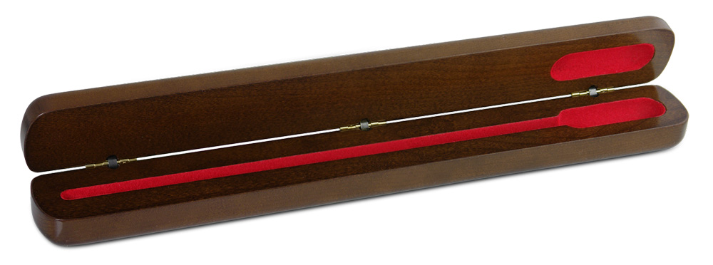 Mollard baton cases are excellent companions to your Mollard batons, and make the perfect gift for that special conductor in your life. These fine cases are hand made by Amish craftsmen from American hardwoods. These beautiful hardwood cases can nestle several batons up to 16 inches (405mm) in length. The Mollard logo is laser engraved on the lid. Available in walnut and cherry. Optional case cover also available.