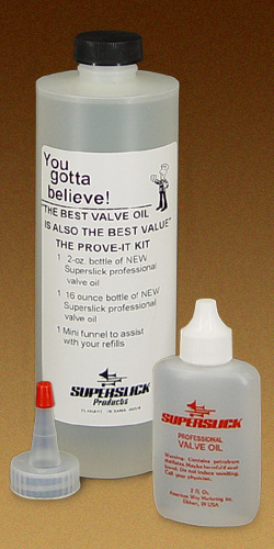 SuperSlick Water Spray - Click for Larger Image SuperSlick Tomrbone Slide Kit - Click for Larger Image SuperSlick Trombone Slide Oil Spray - Click for Larger Image SuperSlick Trombone Slide OIl - Click for Larger Image SuperSlick Valve Oil - Click for Larger Image SuperSlick Ultra Valve Oil - Click for Larger Image SuperSlick Workshop Pack - Click for Larger Image